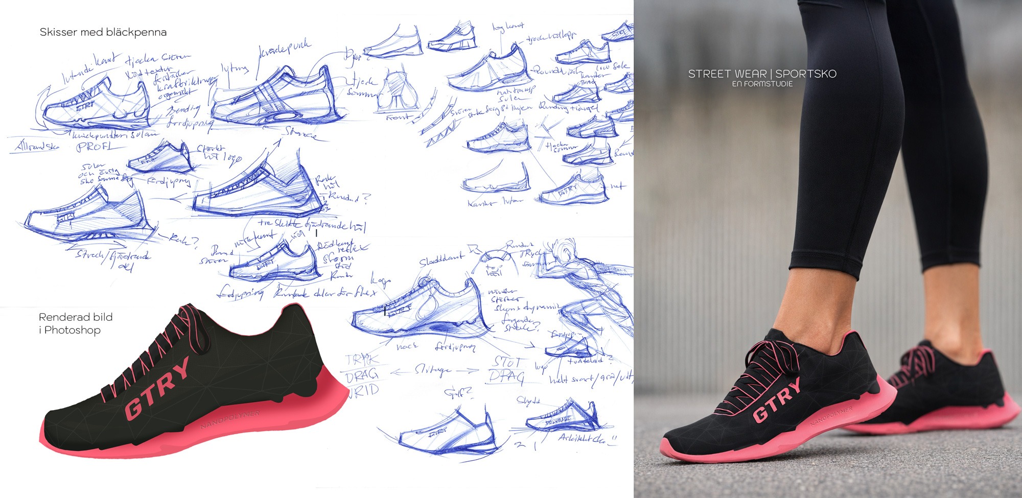 Design av skor för rörelse och olika typer av sportaktiviteter. Skon har en enkel stil för att tilltala en större målgrupp. Snörning är också ett led i detta. Den har fördjupningar längst kanterna på sulan för att förstärka en del krafter som uppkommer vid rörelse är tanken, samt sulan är limmad utan en synlig kant, som gör att sulan ska kännas mer integrerad i skon.