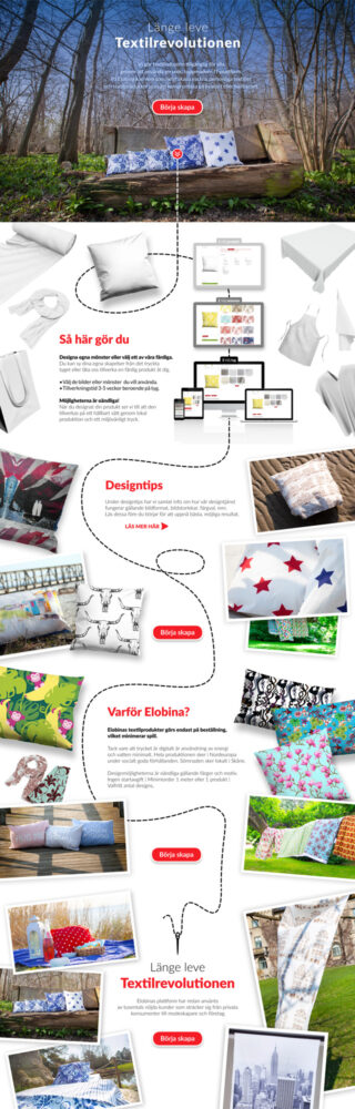 Webbmaterial för kampanjer. Olika bilder sammanfogades och anpassades på ett intressant och utmanande sätt. Här var tanken att du som designar tyger och arbetar med att ta fram kläder kan göra vad som helst och vi gör tyget till det. Att våga vara kreativ och sedan gör det i verkligheten.